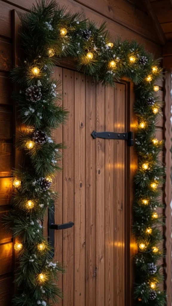 Framing your entryways with warm lights creates instant holiday charm. Use soft golden tones instead of bright white. Wrap them around the door frame, then add a few pine branches to soften the edges. This sets the mood as soon as someone steps into the room.