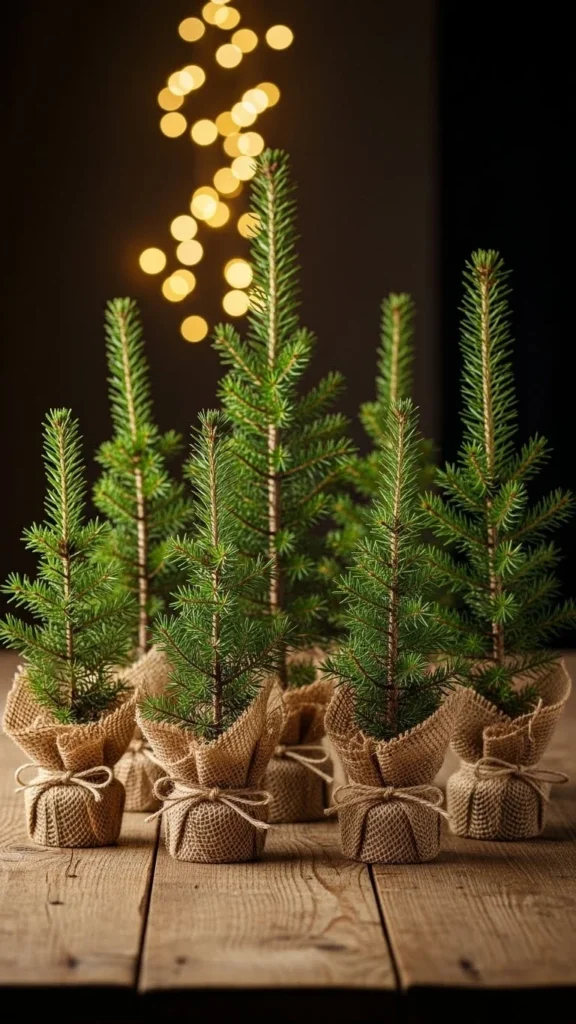 Tabletop trees help fill empty surfaces without clutter. Choose small potted pines or faux versions wrapped in burlap. Add tiny wooden ornaments or leave them bare for a natural look. They work well on nightstands, kitchen counters, or entry tables.