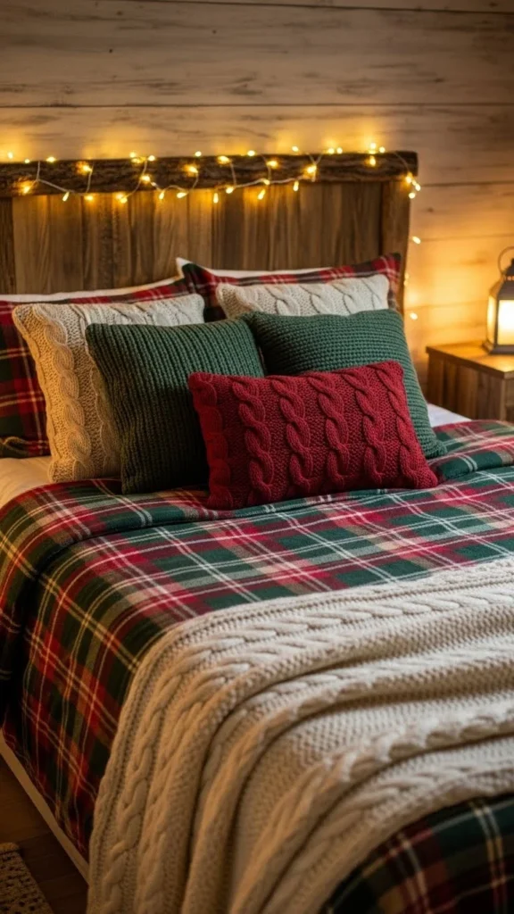 Switching your bedding to flannel instantly brings warmth to your bedroom. Choose classic holiday colors or neutral buffalo check. Pair it with a knitted throw or faux-fur accent pillow. This switch makes your space feel comforting during the cold season. It also ties your bedroom into the overall holiday theme without requiring many decorations.