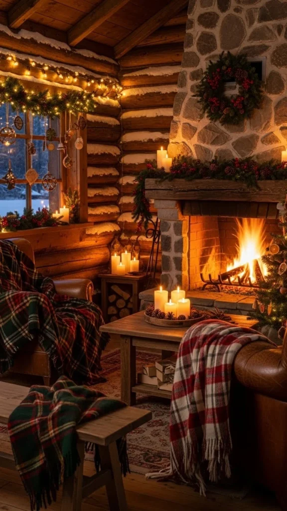 Plaid instantly adds warmth to a cabin-style Christmas space. Pick a few throw blankets and layer them across sofas, chairs, or even the foot of your bed. Choose earthy reds, greens, and browns that blend nicely with wood tones. Keep it relaxed. Fold them loosely or drape them casually. Add a faux-fur accent throw to create extra coziness without spending much. If you’re decorating on a tight budget, grab affordable plaid scarves from local shops and use them as mini throws. They deliver the same snug effect without taking up too much space. Mix patterns but stay within the same color family so the room still feels coordinated. This simple change fills the room with softness and sets the mood for the rest of your holiday decor.