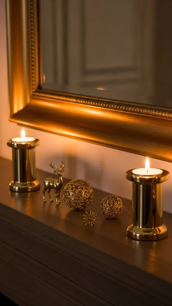You don’t need many items. One shiny element on each surface is enough. For a DIY option, spray-paint old décor in matte metallic tones. This creates consistency and helps tie your entire theme together. Metallic accents reflect both natural and string light, making the room glow softly.