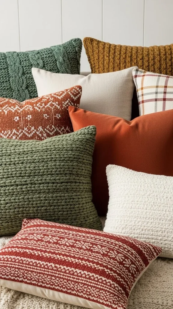 Texture adds depth to a room. Mix materials like knits, velvet, and linen for a cozy layered feel. Choose tones that work with your existing furniture.