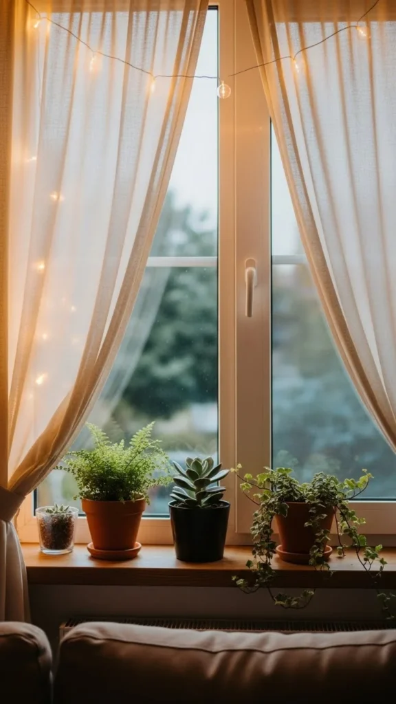If you’re decorating on a budget, reuse old lights by cleaning the wires and weaving in faux greenery. This makes the lights feel fuller and more intentional. You can also place a short strand inside clear jars for a lantern effect. These small touches brighten the room and help tie different décor areas together.