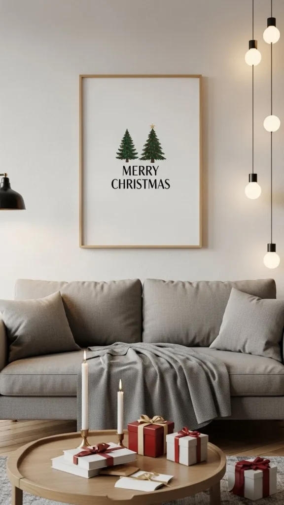 Swapping artwork is one of the quickest ways to change the mood. Replace one or two frames with seasonal prints in neutral tones. Choose simple designs like trees, stars, or winter landscapes.