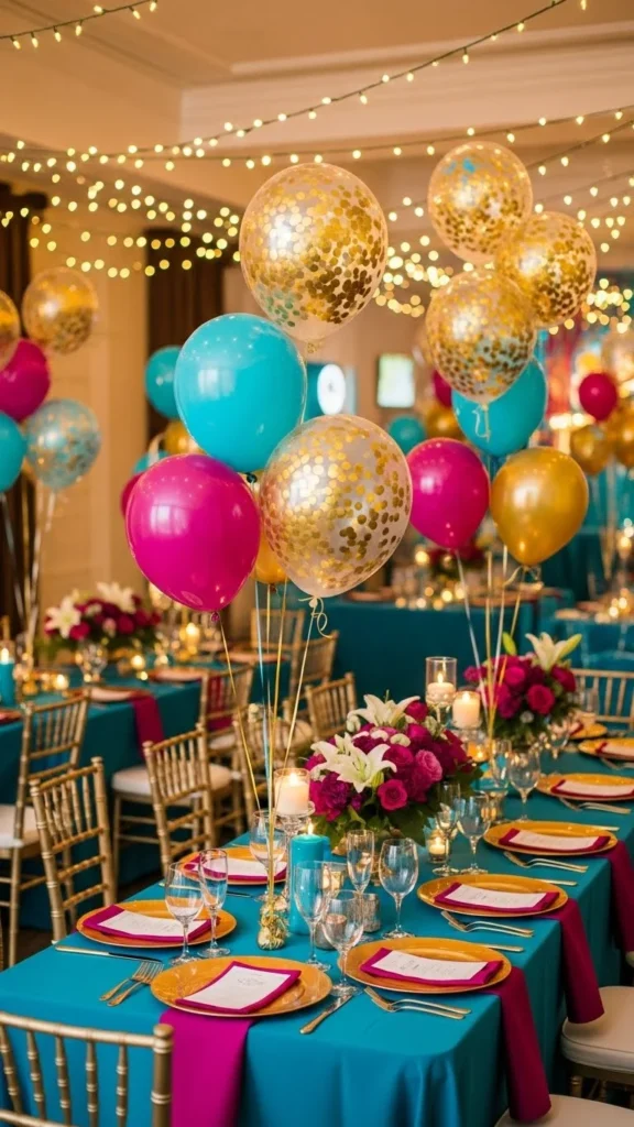 Avoid overcrowding. Metallic finishes already draw attention. A few well-placed balloons often look better than many scattered ones.