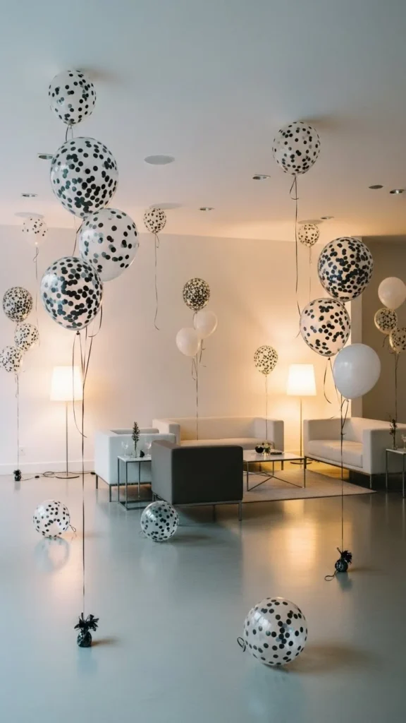Black and white confetti balloons suit modern homes and adult gatherings. They feel clean and intentional without bright colors.