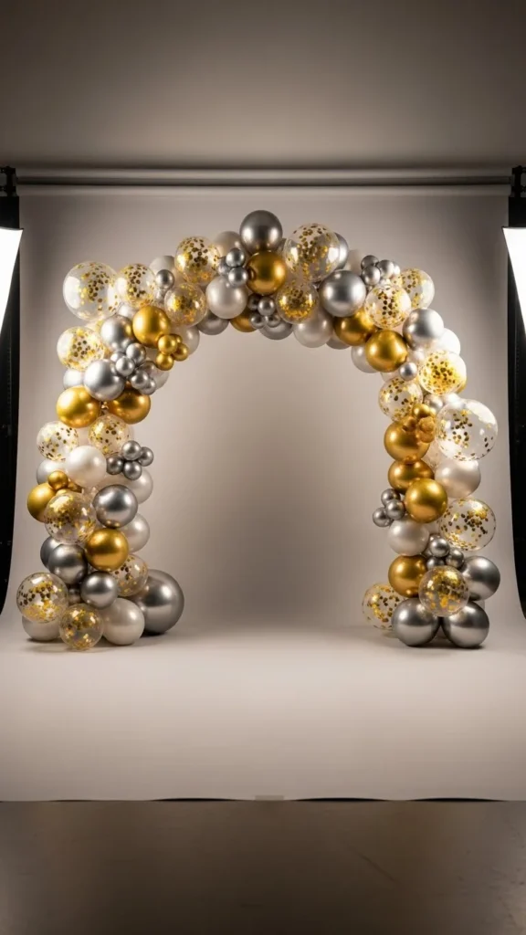 Use silver or rose gold for flexibility. These tones fit many occasions. Keep balloon placement near light sources for better effect.
