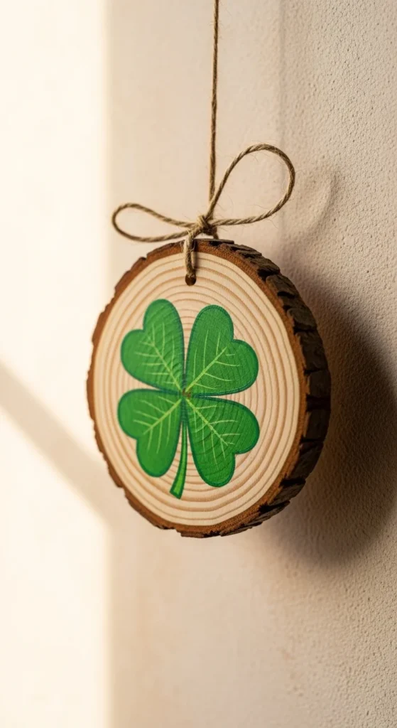 Wood slices feel organic and simple. Paint a clover and attach twine for hanging.