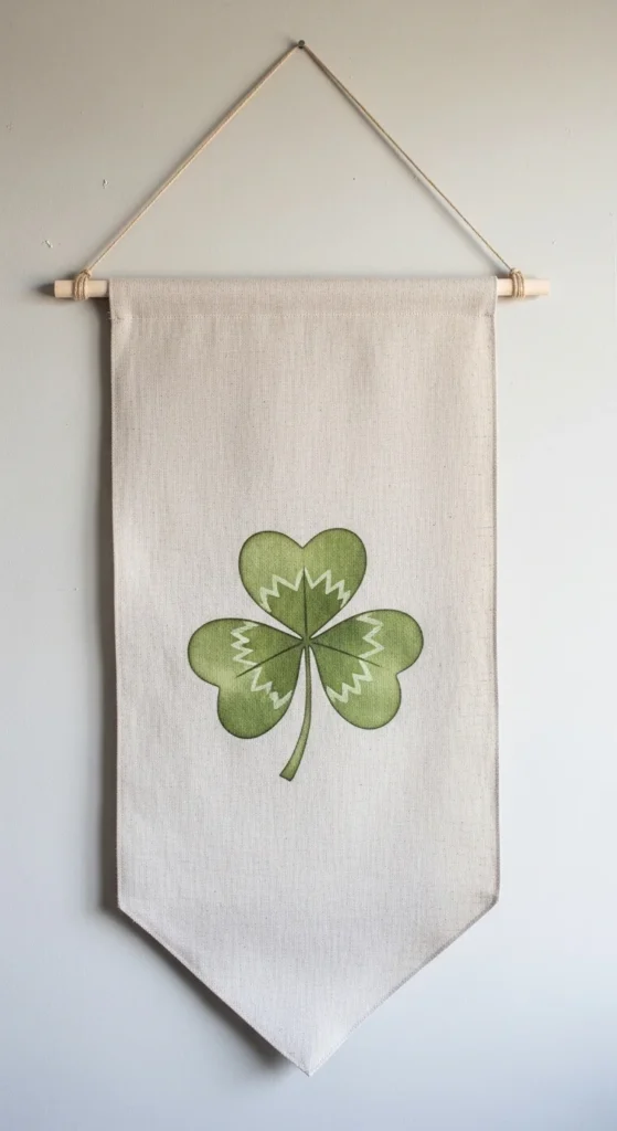 Paint a clover onto linen fabric using fabric paint. Attach to a dowel rod for hanging.