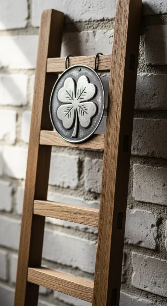 Attach a small clover plaque to a decorative ladder.