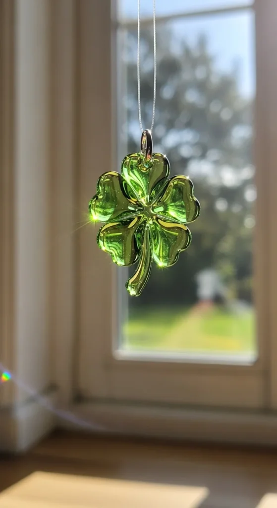Use stained or clear glass to form a clover shape. Hang near windows for soft light reflection.