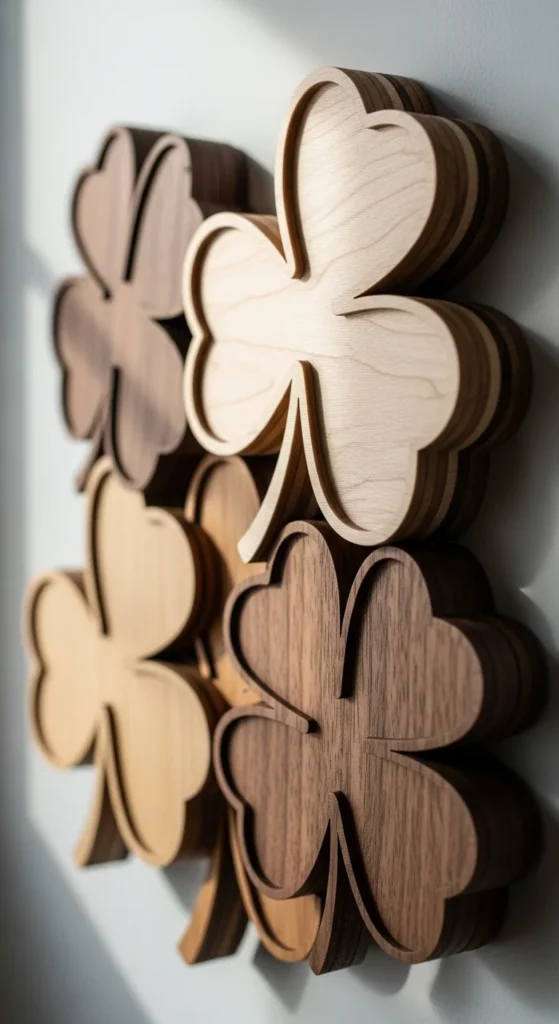 Cut multiple clover shapes in slightly different sizes and stack them for depth. Paint in varying green tones for dimension.