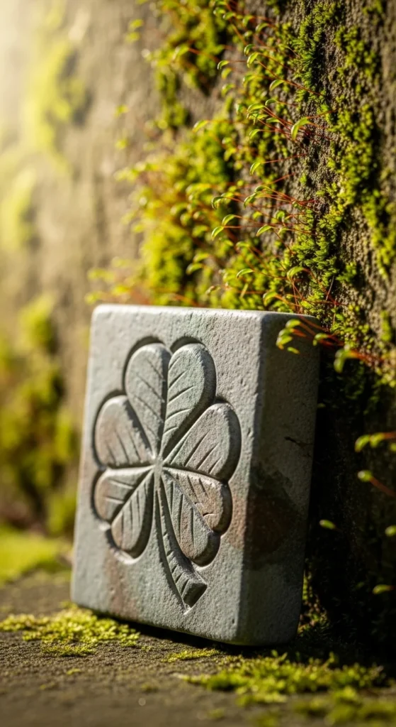 4. Stone-Carved Clover Garden Plaque
