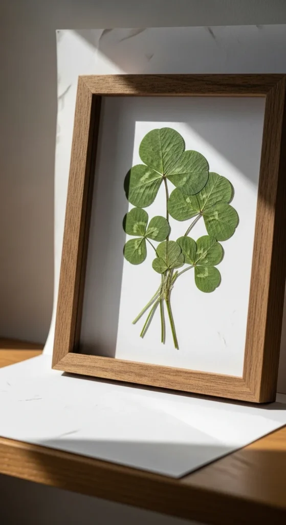 Pressed clover art connects directly to nature. It feels gentle and meaningful.