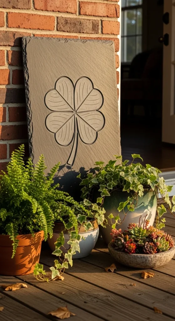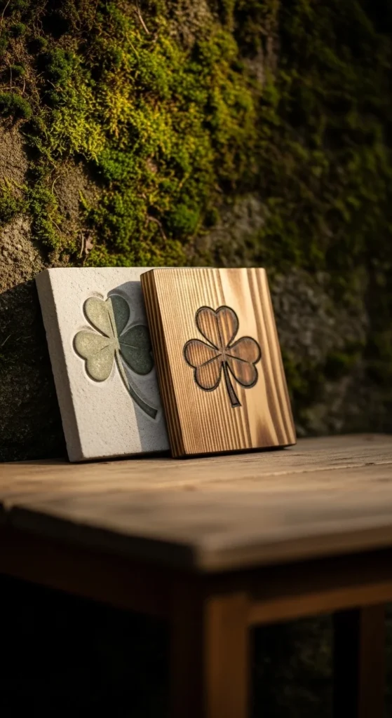 Slate offers earthy texture and durability. Engrave or paint a simple clover design onto a slate tile.