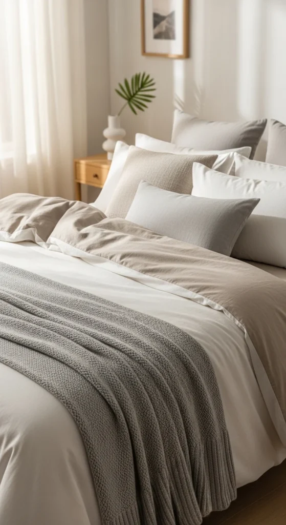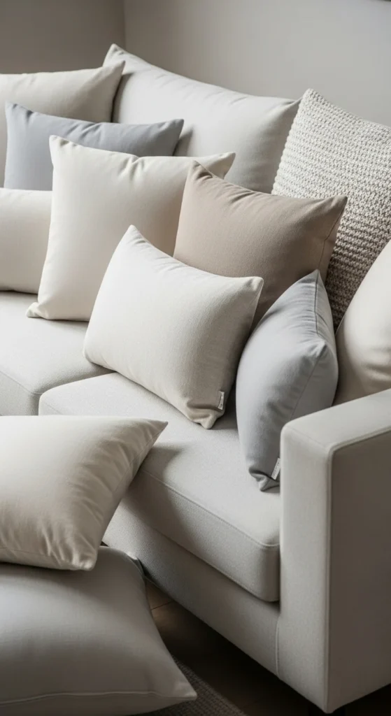 Swapping pillow covers is one of the fastest ways to update a room. Soft neutrals create a calm foundation that looks polished. Linen-look fabrics or cotton blends work well and often cost less than full pillows.