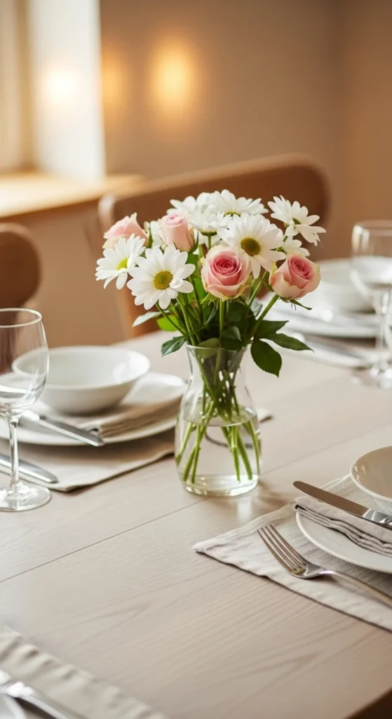 A small bouquet can make a space feel styled right away. Grocery store flowers or backyard clippings work just fine.