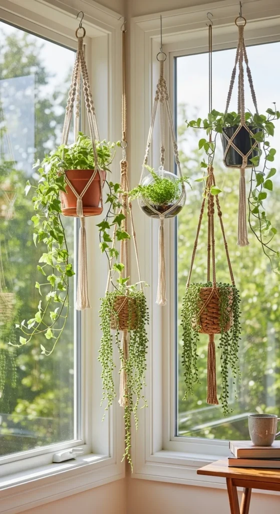 Macrame holders are easy DIY.
