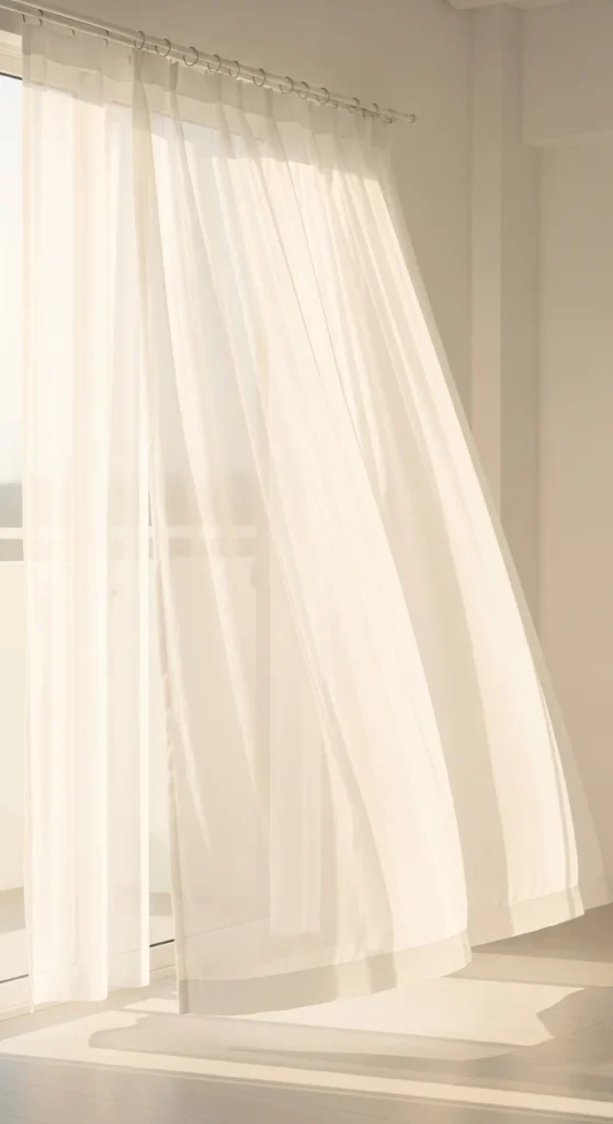 Sheer or lightweight curtains soften windows and allow daylight to filter in.