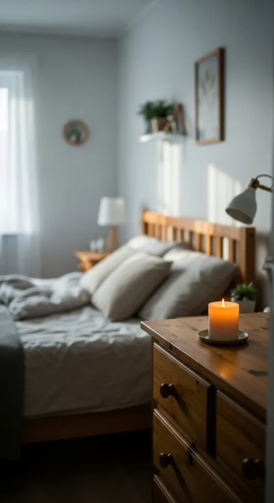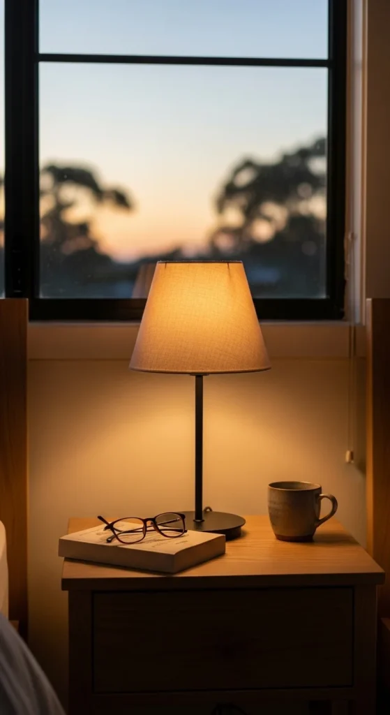 Soft lighting supports relaxation. A simple bedside lamp with a warm bulb helps create a gentle atmosphere in the evening.