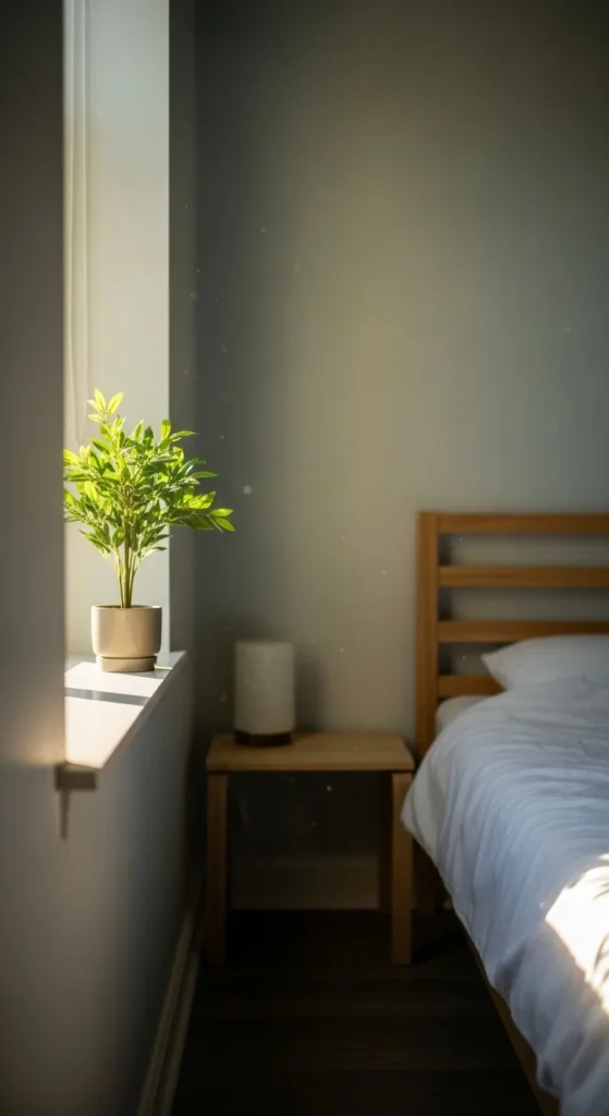 Plants add life but too many can feel distracting. One small plant near a window is enough.