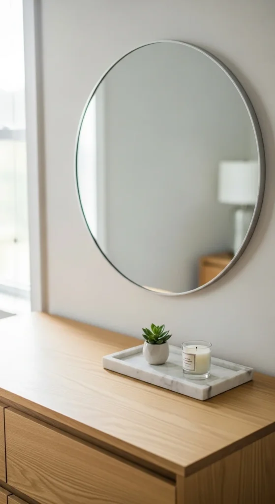 Dressers often become catch-all spaces. Limiting items helps the room feel calmer.