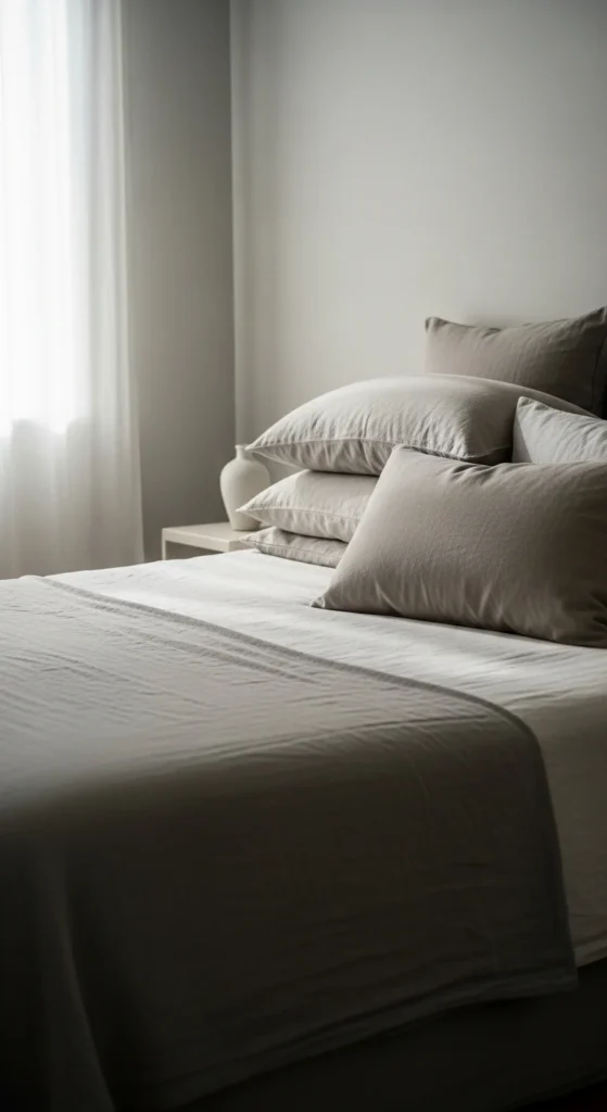 Too many pillows can make a bed feel crowded. Instead of adding more, rotate what you already own. Swap decorative pillow covers for lighter colors or simpler textures.
