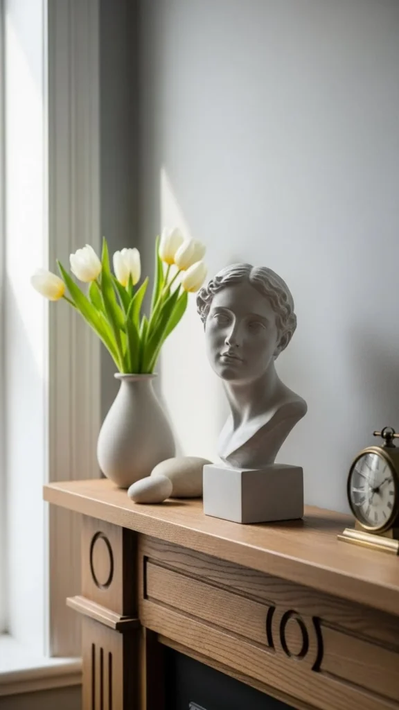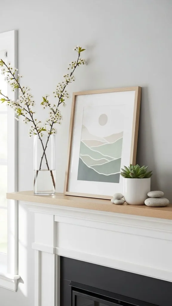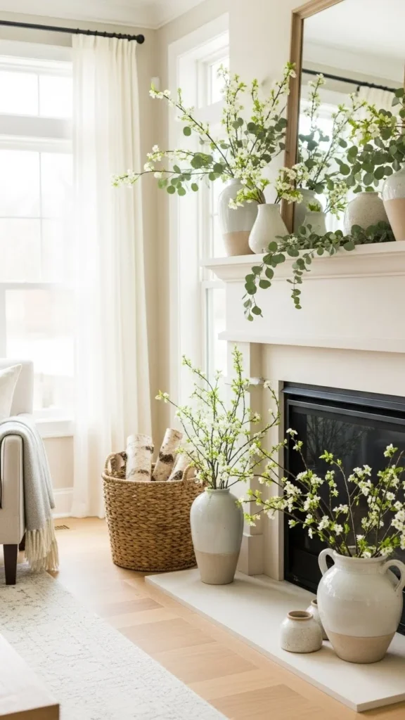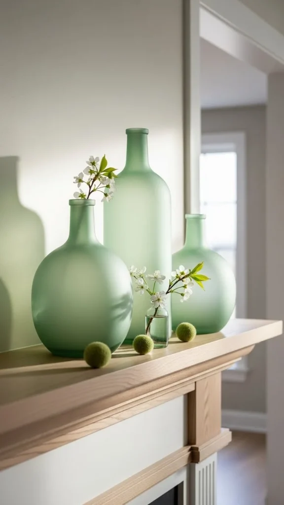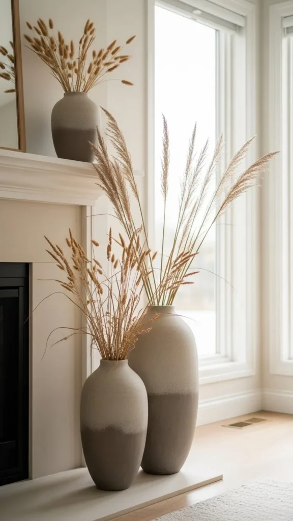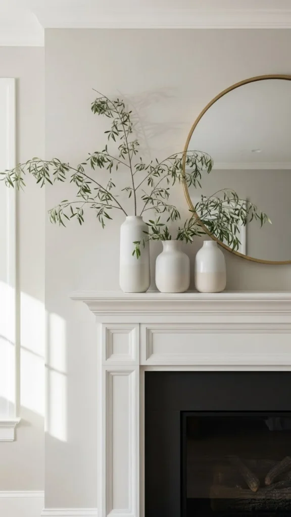 If your mantel is narrow, cluster vases on one side and leave open space on the other. That breathing room keeps the fireplace from feeling crowded.