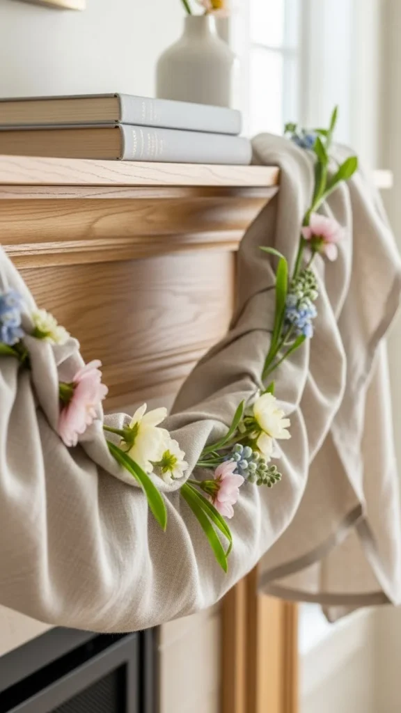 Fabric garlands replace winter greenery nicely. Linen or cotton works best.