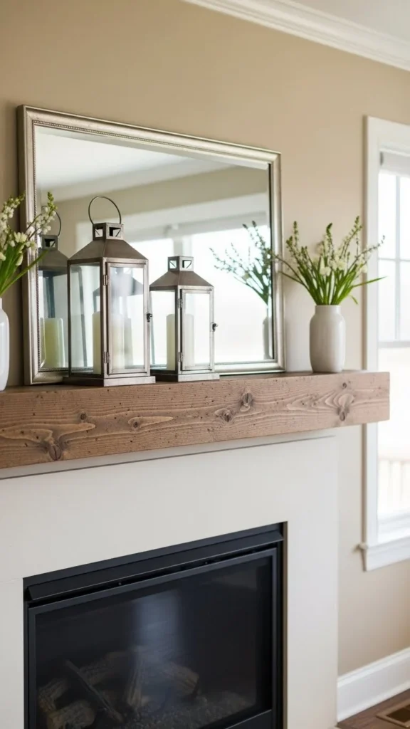 Place lanterns on the hearth rather than the mantel for balance.