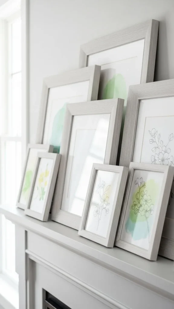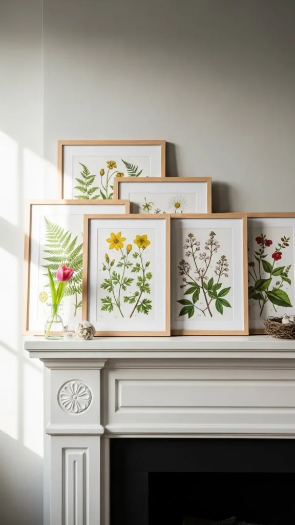 Botanical art brings spring energy without clutter. Lean frames instead of hanging them. This avoids holes and feels more relaxed.