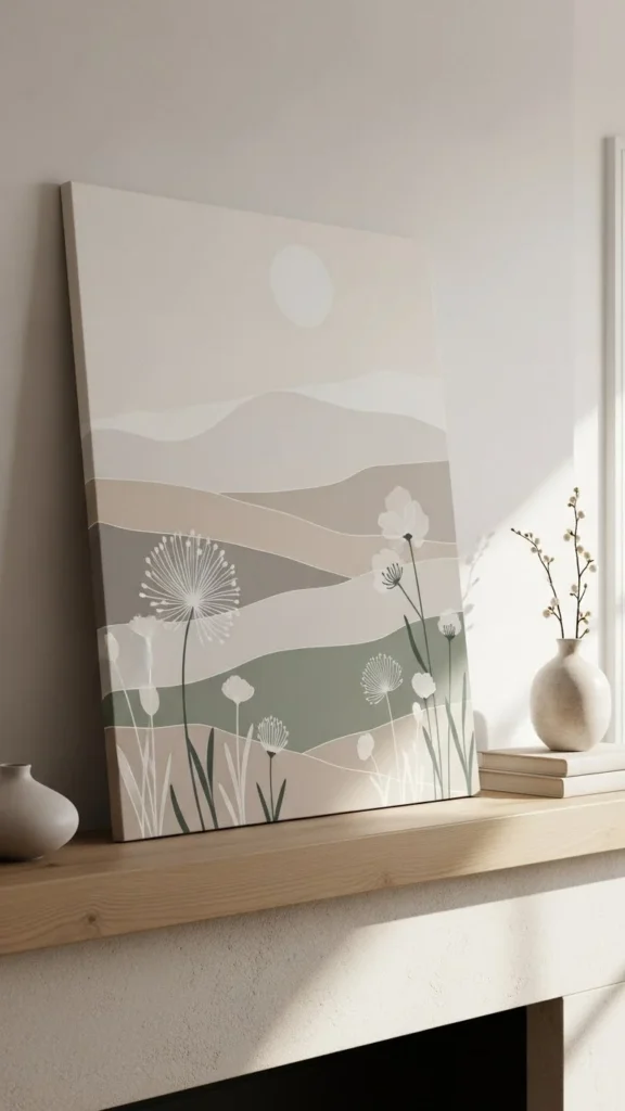 Fabric art adds texture without color overload. Linen or cotton works well.