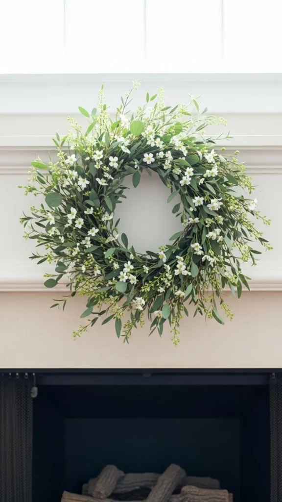 26. Minimal Seasonal Wreath Above the Firebox