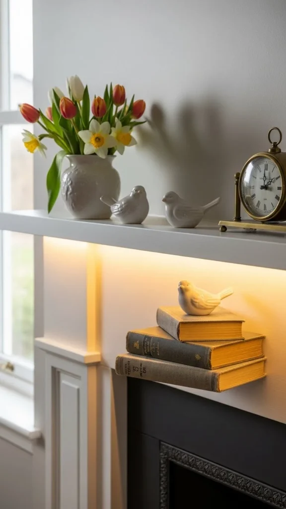 Spring is the season when fireplaces often get ignored. Once the heavy logs and winter garlands come down, that focal wall can feel empty or awkward. A spring-styled fireplace brings balance back into the room. It adds warmth without heat. It frames your living space while keeping things light and lived-in. These ideas focus on simple swaps, soft color shifts, and objects you can reuse or DIY. Nothing here feels forced or expensive. Each approach helps your fireplace feel relevant again during brighter months.