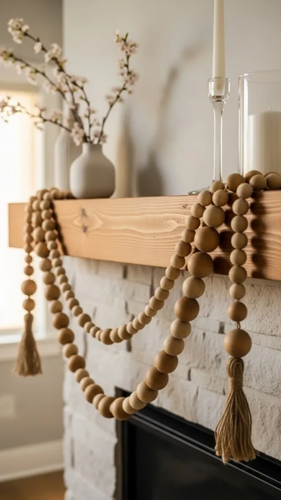 4. Simple Wooden Beads Draped Across the Mantel