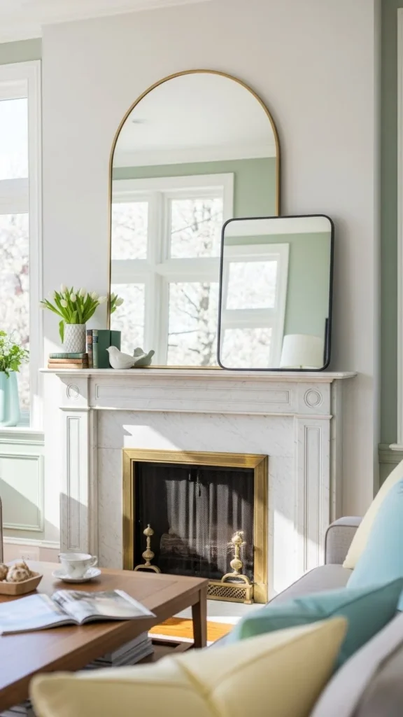 This setup works especially well if your fireplace faces a window. The reflection brings outdoor light deeper into the space.