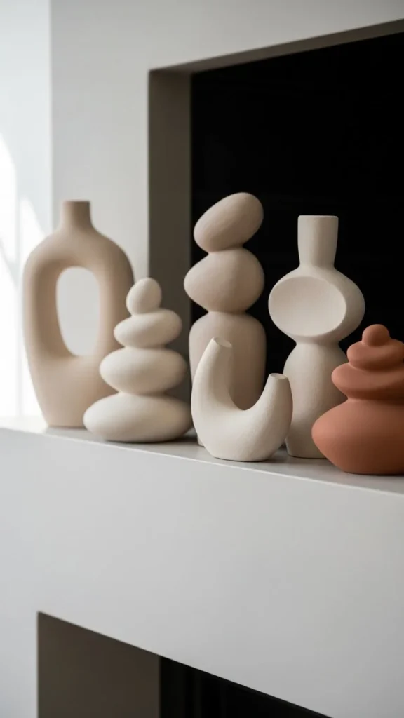 Clay objects add quiet interest. Look for rounded or abstract forms.