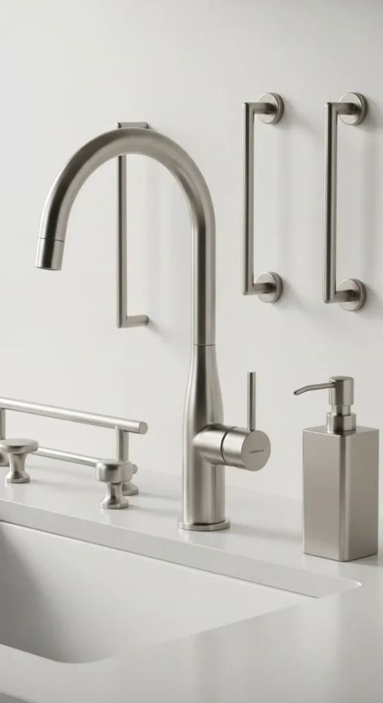 Consistency in finishes creates a clean look. Match knobs, handles, and fixtures when possible.
