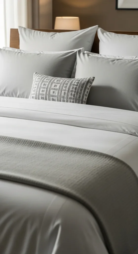 Layering bedding adds polish. Use a fitted sheet, flat sheet, light quilt, and pillows.