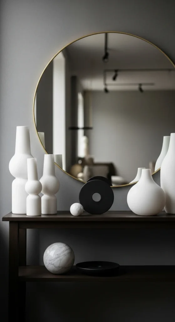 Decor does not need loud color. Neutral objects add interest without distraction.