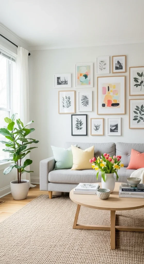 You don’t need new art to make walls feel different. Rearranging frames changes the look instantly. Try lowering art slightly to feel more grounded.
