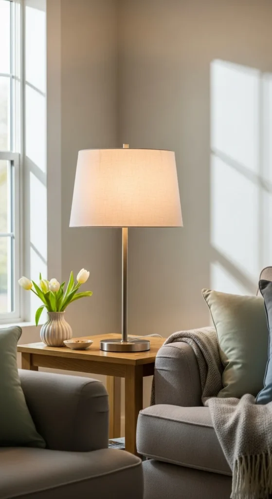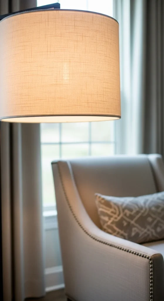 Lamp shades affect how light spreads in the room. Dark or textured shades can block light. Switching to white or cream shades allows more glow.