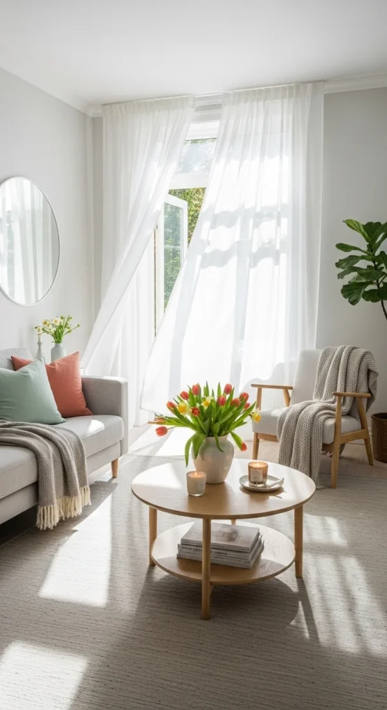 Light scents suit spring living rooms. Choose mild candles.
