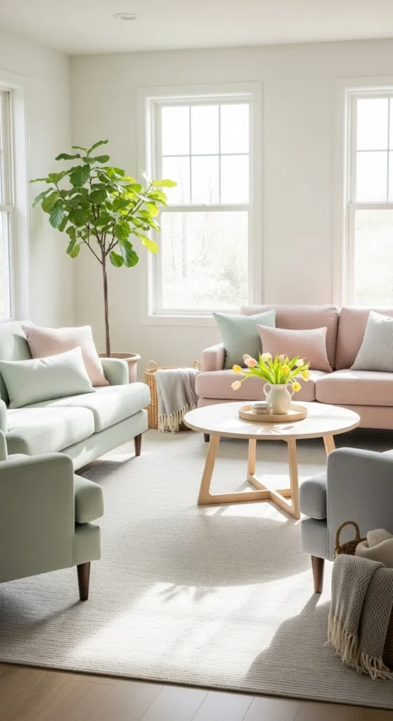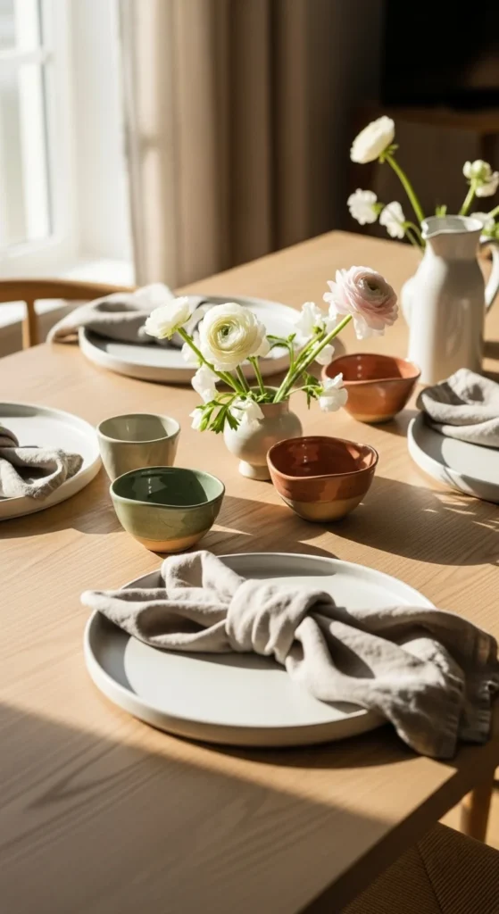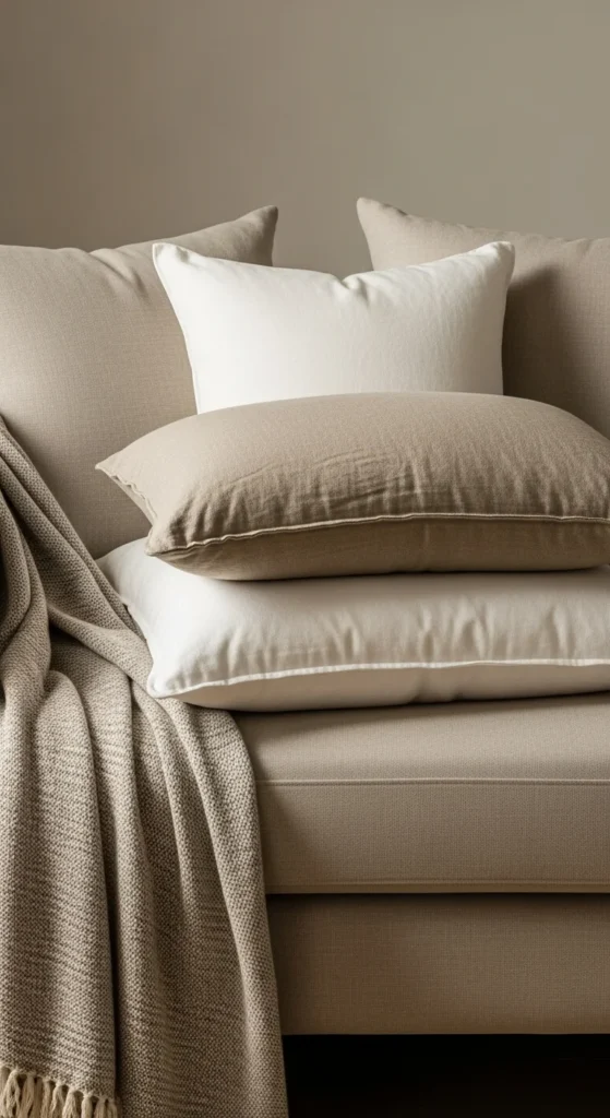 This approach keeps the room calm while still feeling styled. Stick to two or three tones to avoid visual noise. Off-white, sand, and soft gray work well together. You do not need matching sets. In fact, slight differences make the space feel curated.
