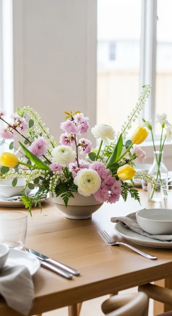 Low arrangements feel relaxed and usable. They keep sightlines open.