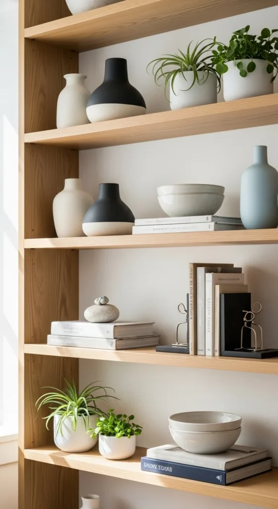 Avoid overcrowding shelves. Negative space matters as much as the items themselves.