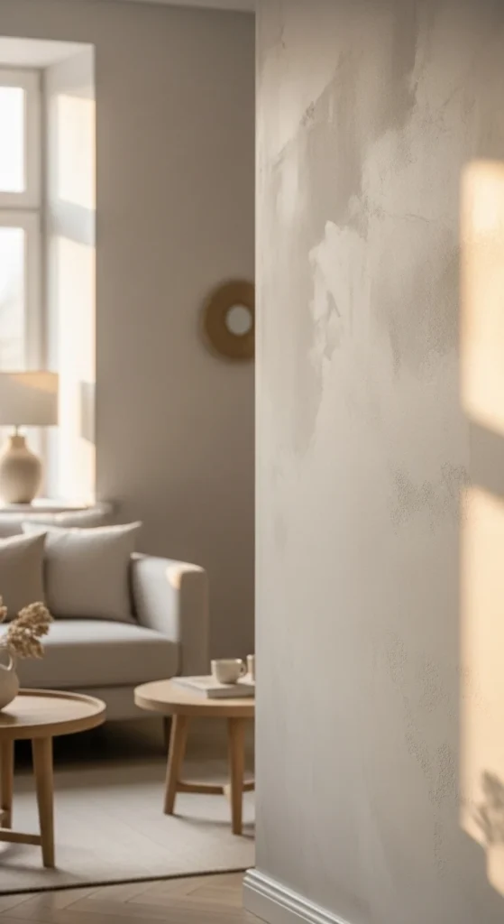 Subtle wall texture adds depth. Limewash-style paint or plaster effects work well.