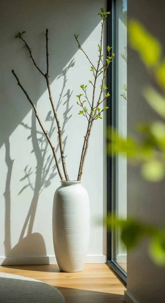 Skip overcrowding. One or two branches are enough. Let negative space do the work. If leaves feel too busy, bare branches can look even more refined.
