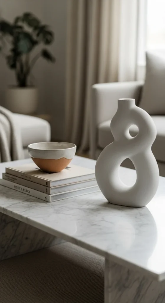 4. Soft Stone Coffee Table Styling