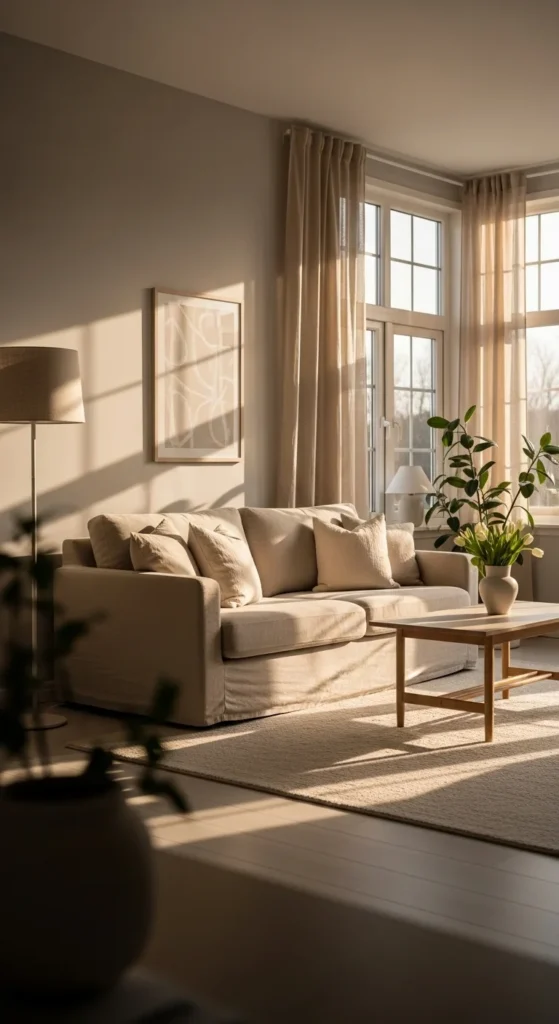 Light walls reflect daylight and support neutral decor. Soft white or warm cream tones work better than stark white.